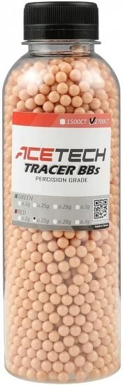 台湾ACETECH純正の高品質トレーサーBB弾 (レッド) 0.25g/2700発。 製造公差5.95±0.01mmと真球に近い超精密BB弾となっており、赤色系のトレーサーを使用すると発光させることができます。